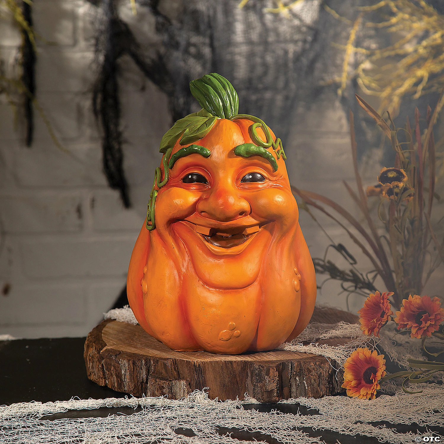 Fall-themed decorations get a jolt of happy with this smiling expressive pumpkin. Add this festive orange pumpkin decoration to porch displays or indoor tabletop arrangements to upgrade the fall atmosphere to cheerful. This resin pumpkinβs smile just encourages a grin from anyone that sees it. Resin. 7 1/4″ x 10 1/2″ Β© OTC
